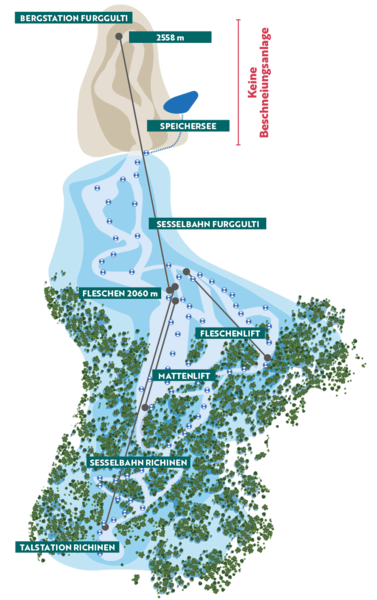 Die Folgen der Klimaerwärmung stellen Schneesportgebiete im Alpenraum vor immer grössere Herausforderungen. Obwohl Bellwald mit einer Höhenlage zwischen 1‘600 und 2‘558 m ü. M. zu den höchstgelegenen Schneesportgebieten in der Schweiz zählt, fordern uns warme und trockene Winter enorm. Insbesondere die fehlende Beschneiungsanlage zwischen der Bergstation am «Furggulti» und dem Speichersee «Bidmere» birgt ein erhebliches Risiko, die Pisten am «Furggulti» nicht oder erst verspätet öffnen zu können.