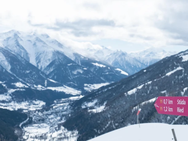 The path initially goes uphill, then ascends by hairpin bends to the Mutti viewpoint. A gentle descent leads back to Ried.